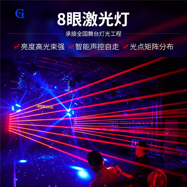 電壓:AC110-220V 50-60HZ 功率:150W 光源:8個500MW(顏(yán)色可以製 紅(hóng) 綠 藍 全彩) 模式:聲控 自走 DMX512 主從(cóng) 旋轉角度:180度 通道:14CH/6CH兩種通道 產品(pǐn)特點:藍(lán)色(sè)液晶屏(píng),斷電記憶功能,加粗激光 適合場所:酒吧,夜店,清吧,舞廳等娛樂場所 產品(pǐn)尺寸(cùn):(106.5*8*17)cm 包裝尺(chǐ)寸:(110*15*21)cm 淨重:6.5kg 毛重:8kg |