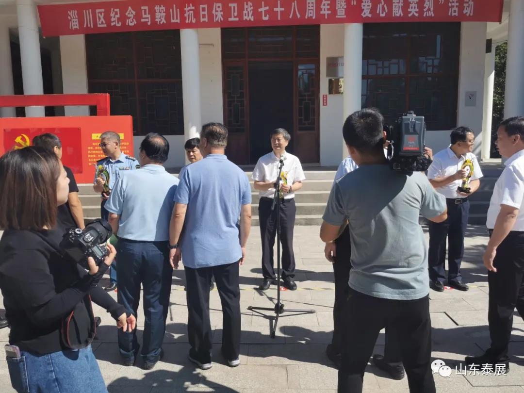 近日(rì),公司在淄川區政府(fǔ)開展的紀念馬鞍山抗日保衛戰七十八周年暨“愛心獻英烈”活動中,積極響應政府號召,捐款(kuǎn)三萬元用於烈士紀(jì)念設施建設維修。